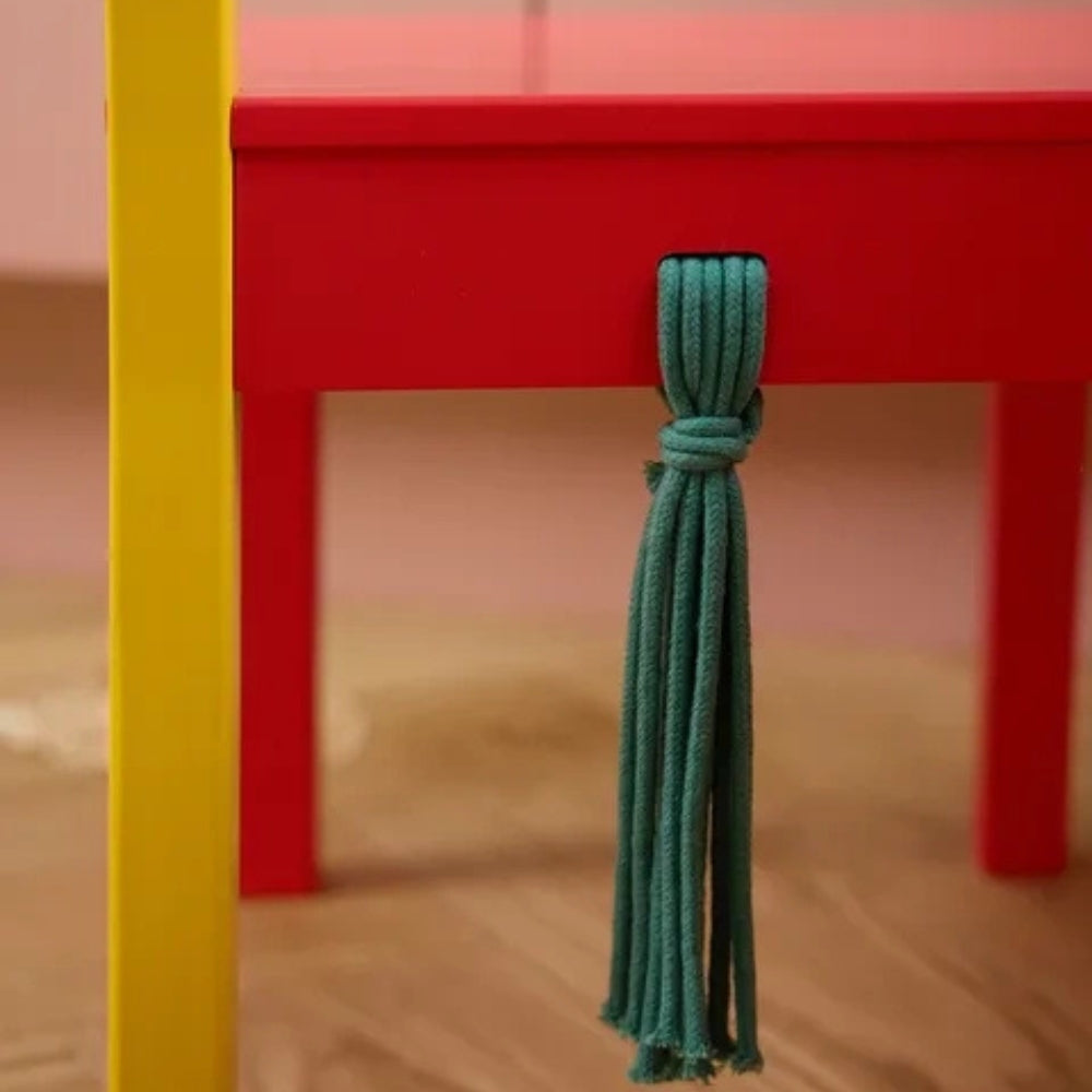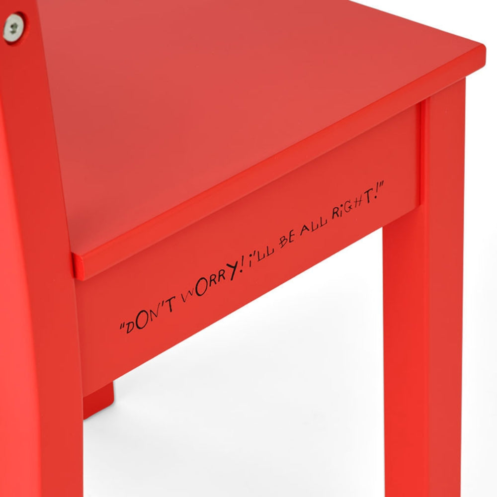 Na siedzisku umieszczono z jednej strony motywujący cytat, a z drugiej ilustrację Pippi, co pozwala dziecku zmieniać wygląd mebla w zależności od nastroju.