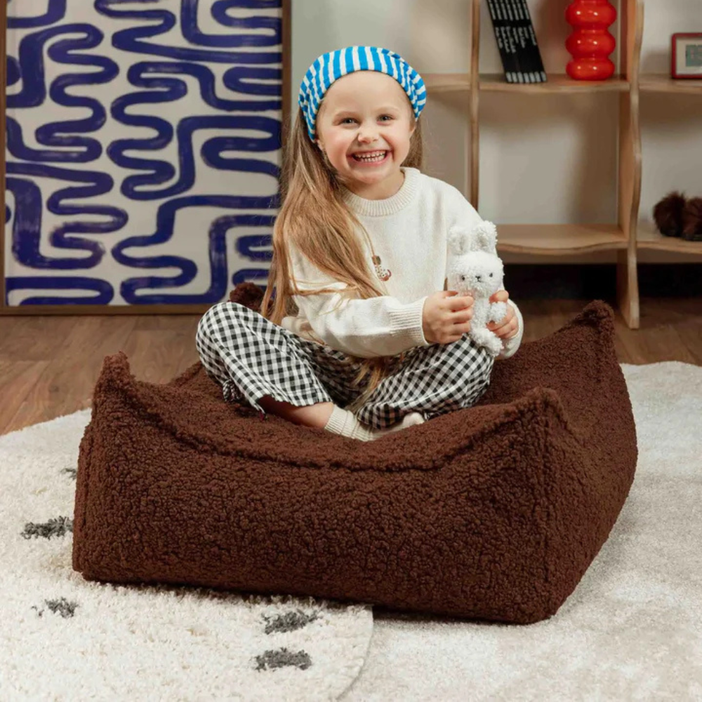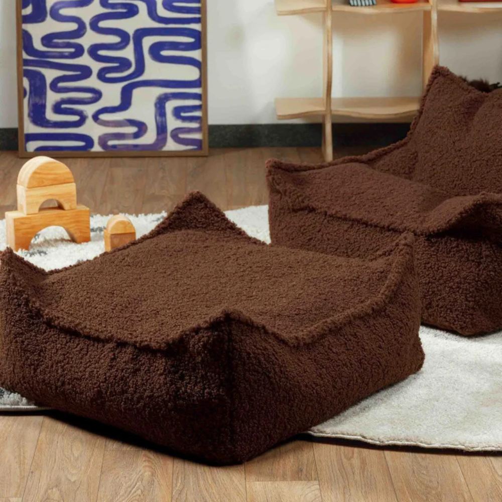 Wigiwama Square Ottoman to świetne uzupełnienie dziecięcej strefy relaksu — pasuje do siedziska typu beanbag i od razu dodaje wnętrzu przytulności.