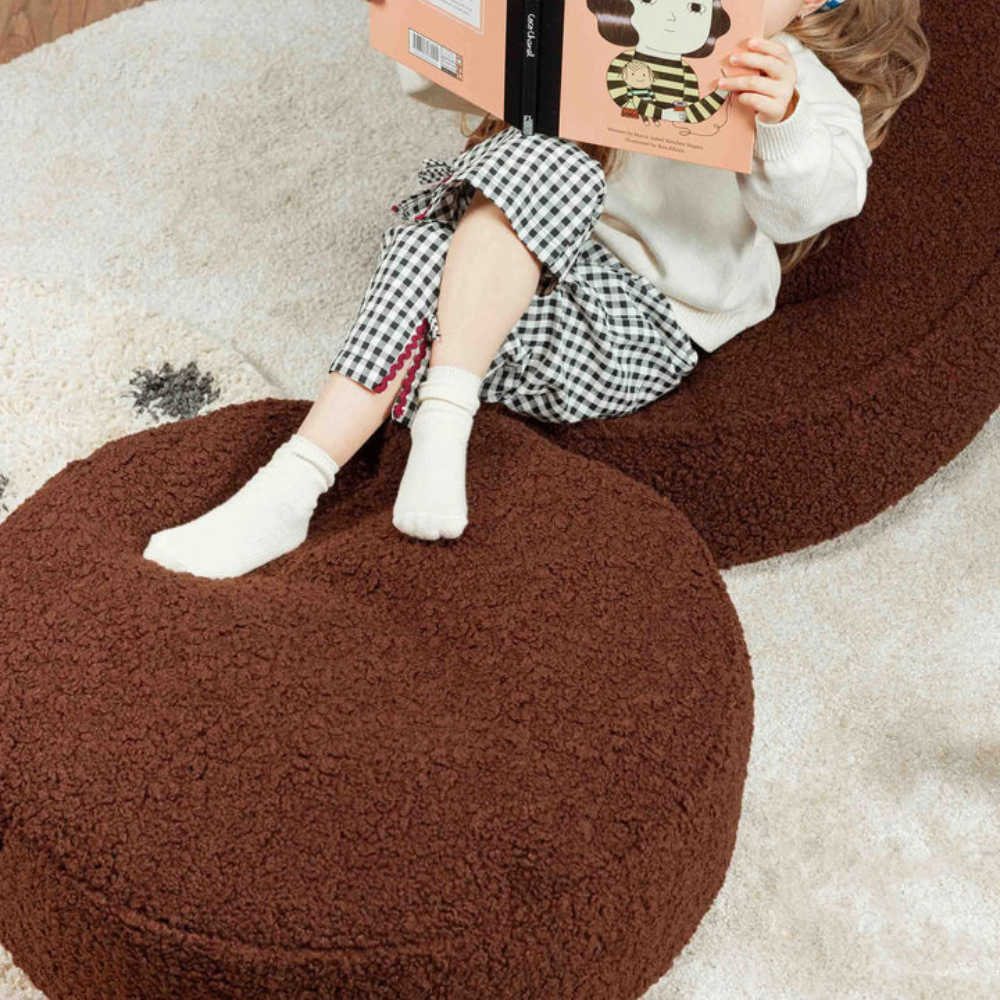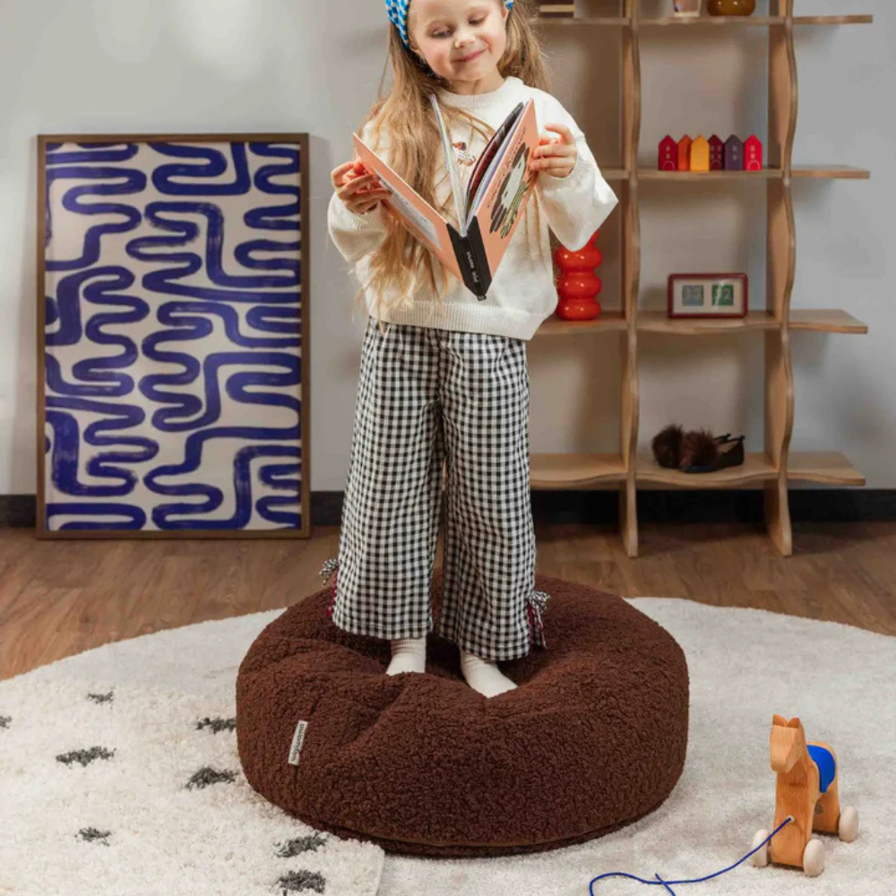 Wigiwama Round Ottoman to świetne uzupełnienie dziecięcej strefy relaksu — pasuje do siedzisk typu beanbag i tworzy przytulny kącik w pokoju lub bawialni.
