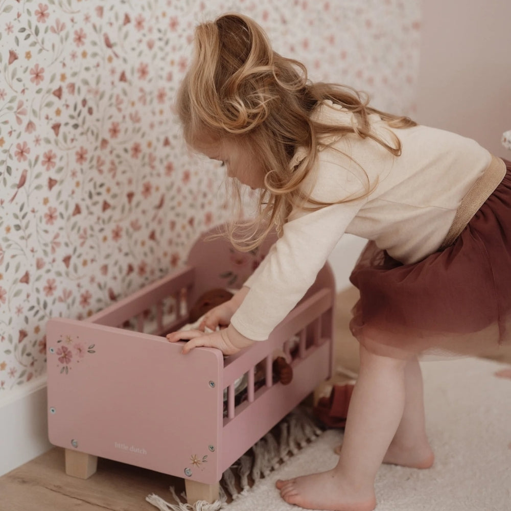 Little Dutch Drewniane Łóżeczko dla lalek z pościelą Różowe