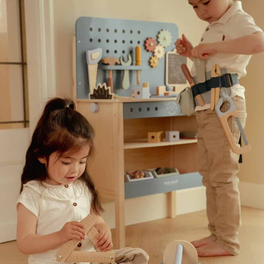 Little Dutch Warsztat z narzędziami z drewna dla dzieci Niebieski