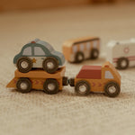 - Zawartość zestawu: 9 drewnianych pojazdów