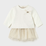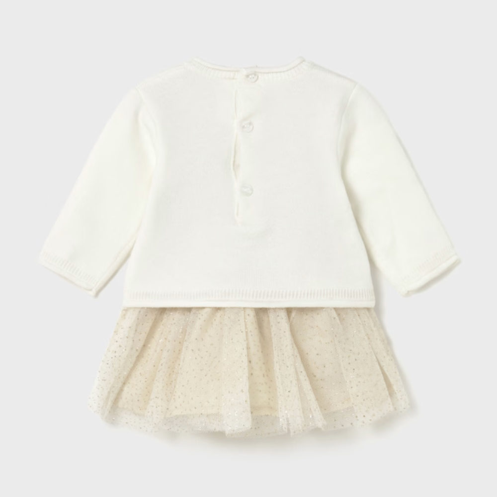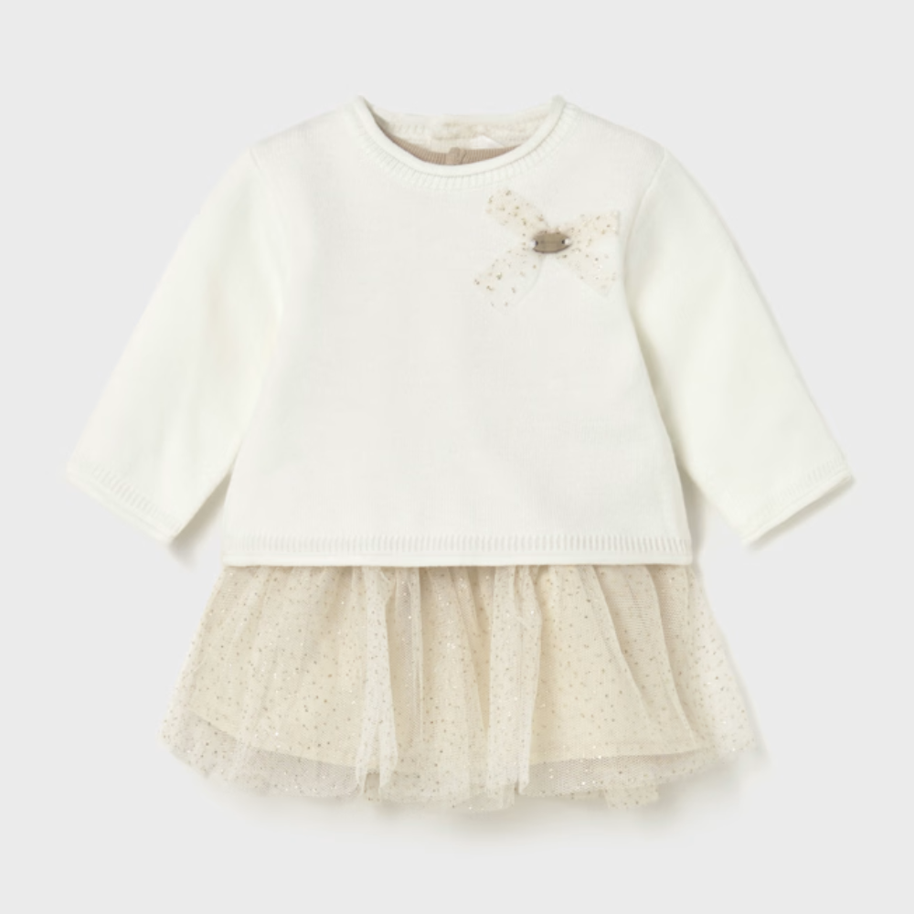 Mayoral Komplet dla noworodka ze sweterkiem i sukienką Kremowy