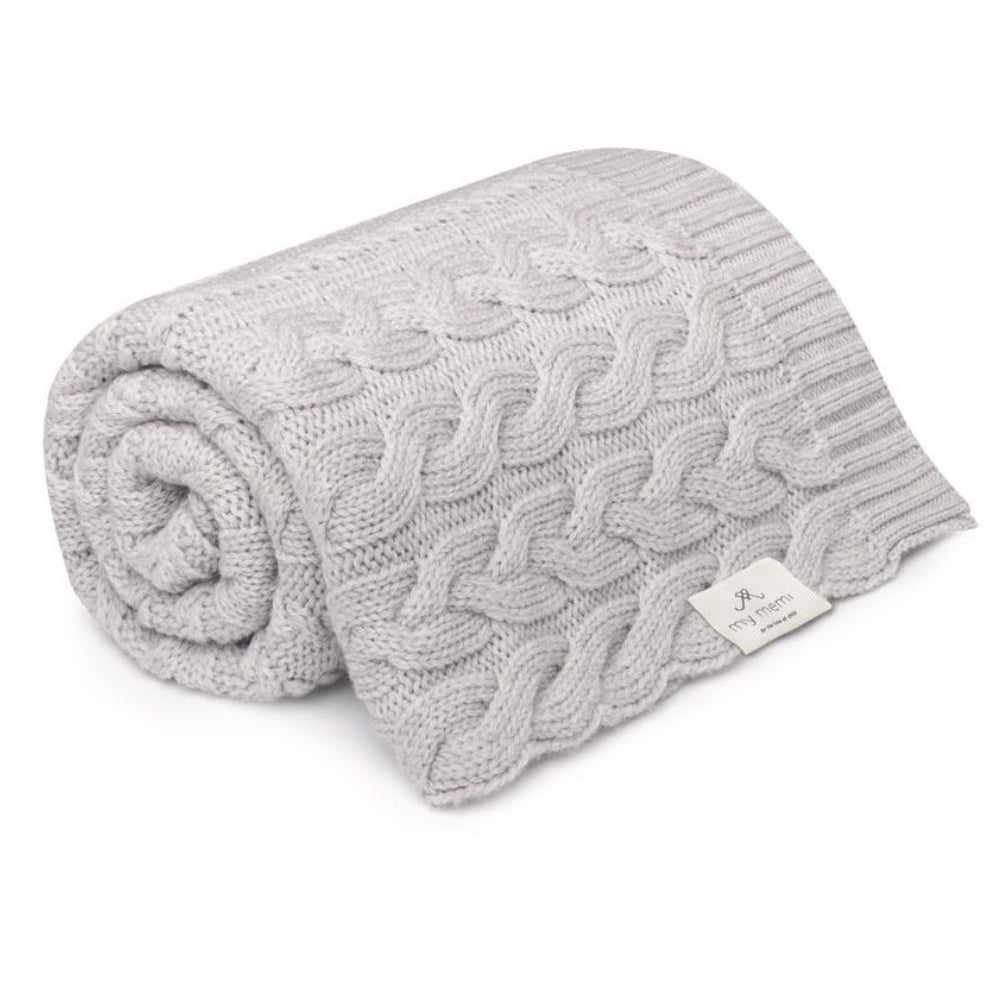 My Memi Kocyk z wełny merino warkocz light grey - premium collection