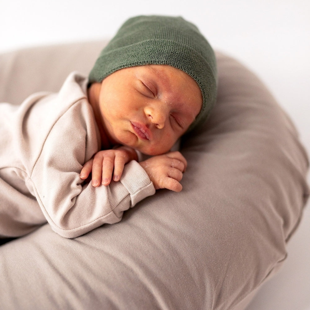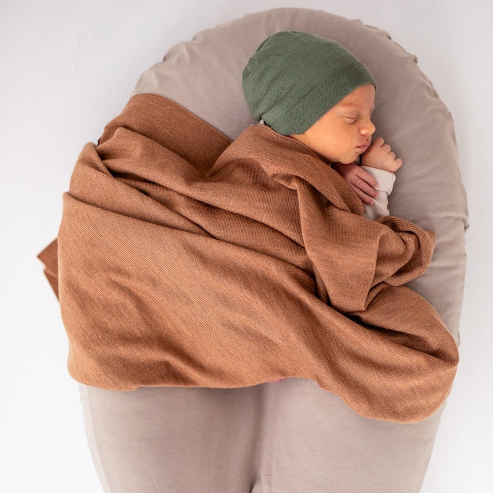 Naturalna bawełna organiczna użyta w pokrowcu jest przyjemna w dotyku, oddychająca i odpowiednia dla wrażliwej skóry noworodka.