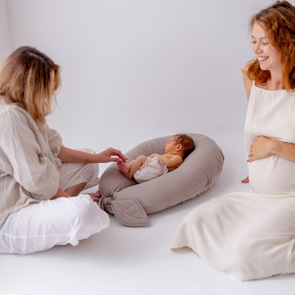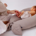 Do zestawu dołączona jest dodatkowa nakładka, dzięki której poduszka w prosty sposób zmienia się w bezpieczny leżaczek dla dziecka, a poduszka ciążowa zyskuje kolejne praktyczne zastosowanie.