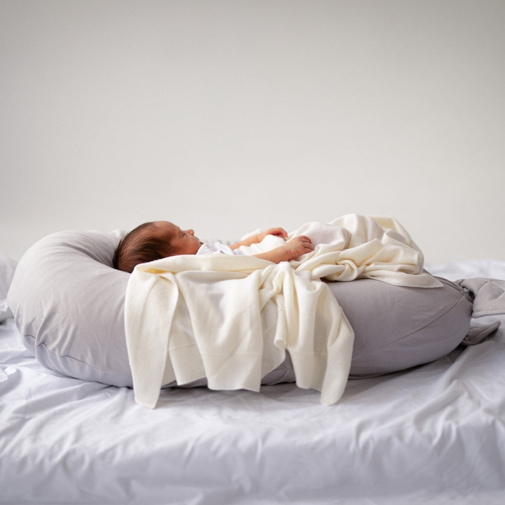 Do zestawu dołączona jest dodatkowa nakładka, dzięki której poduszka w prosty sposób zmienia się w bezpieczny leżaczek dla dziecka, a poduszka ciążowa zyskuje kolejne praktyczne zastosowanie.