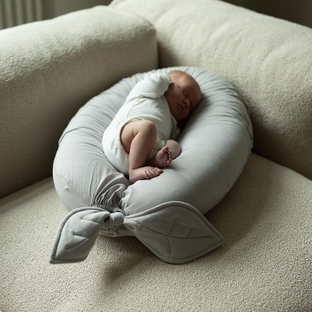 Uniwersalna konstrukcja sprawia, że PUUKI NEST może pełnić również rolę poduszki do karmienia, leżaczka niemowlęcego oraz prześcieradła do gondoli.