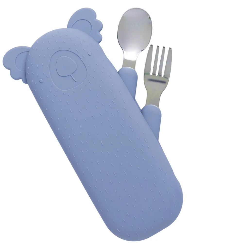 The Cotton Cloud Sztućce dziecięce w etui Zoe the Koala w kolorze Fog Blue