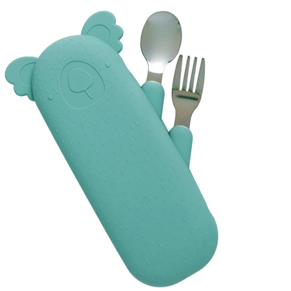 The Cotton Cloud Sztućce dziecięce w etui Zoe the Koala w kolorze Sea Green
