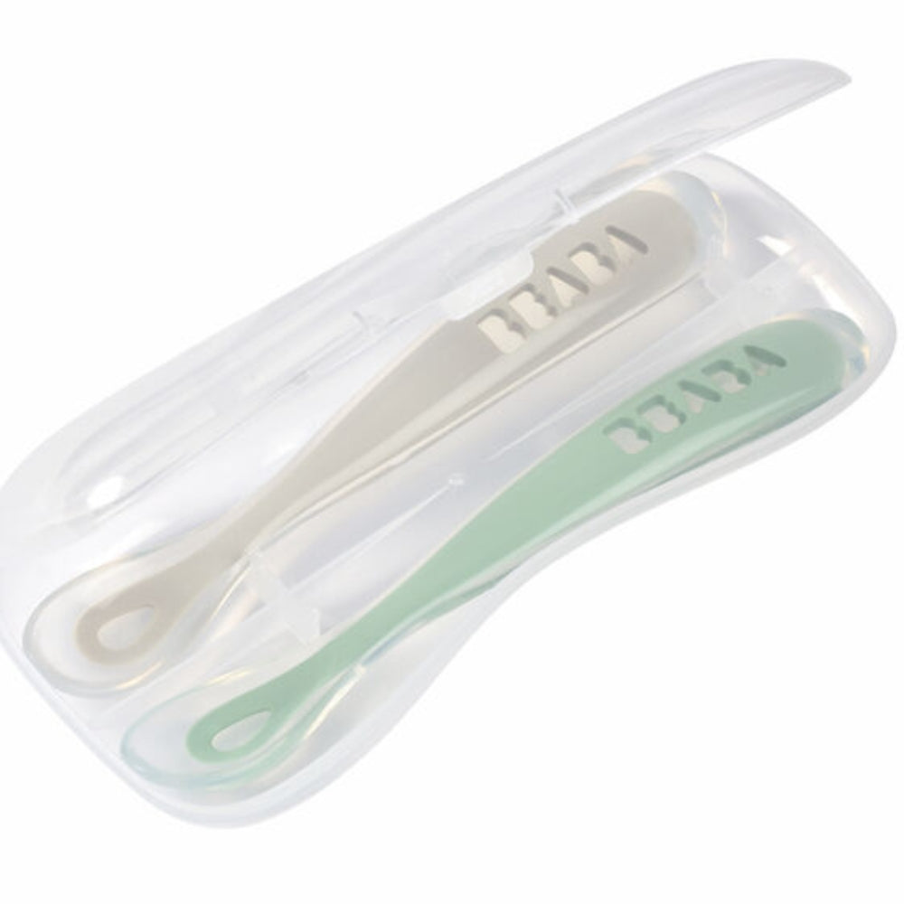Beaba Łyżeczki dla niemowląt sage green 2szt. w podróżnym etui