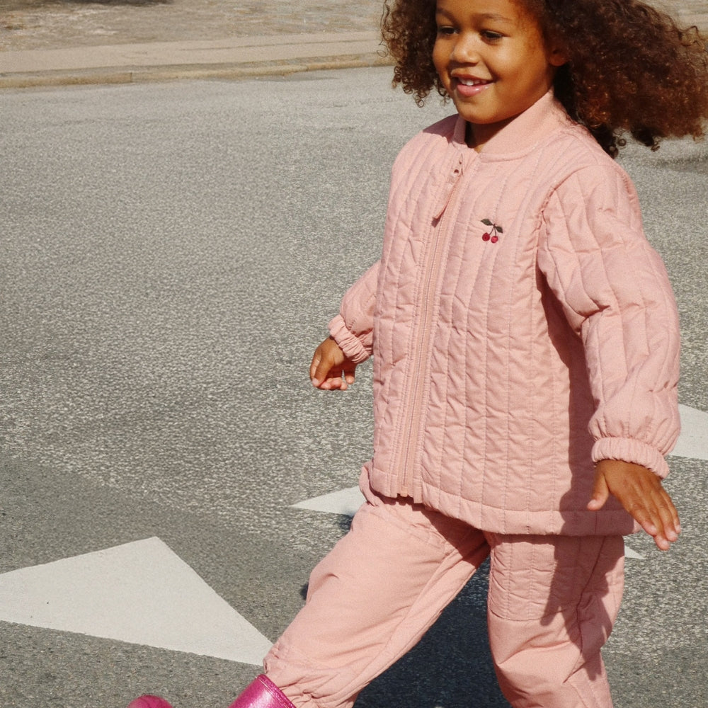 Ten lekki i miękki komplet składa się ze spodni i dopasowanej kurtki, oferując ciepło i swobodę ruchów zarówno w przedszkolu, jak i w drodze do szkoły.