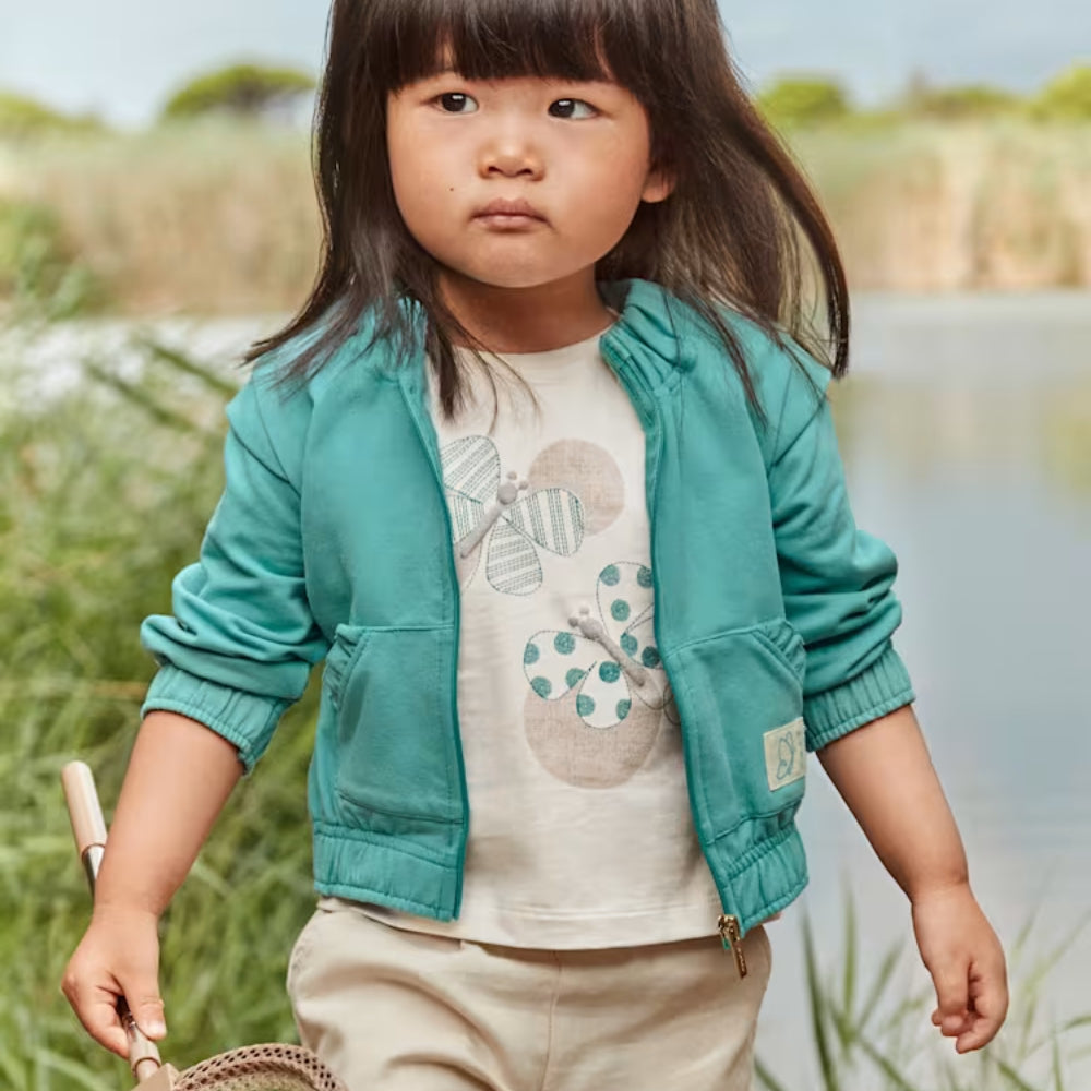 Bluza niemowlęca powstała z bawełny pozyskiwanej w ramach systemu bilansu masy, co jest kolejnym krokiem marki Mayoral w stronę zrównoważonej mody dziecięcej.