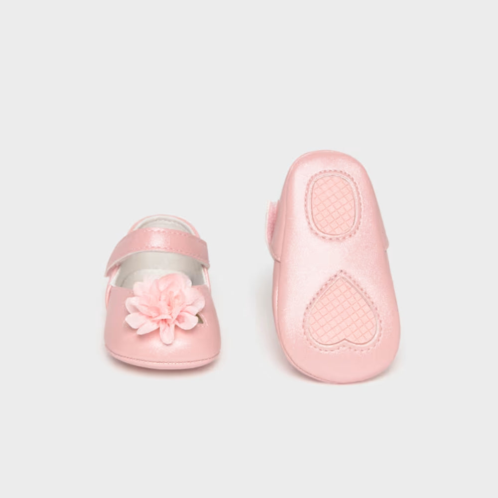 Mayoral Buty niechodki dla dziewczynki balerinki wizytowe z kwiatuszkiem Baby Pink