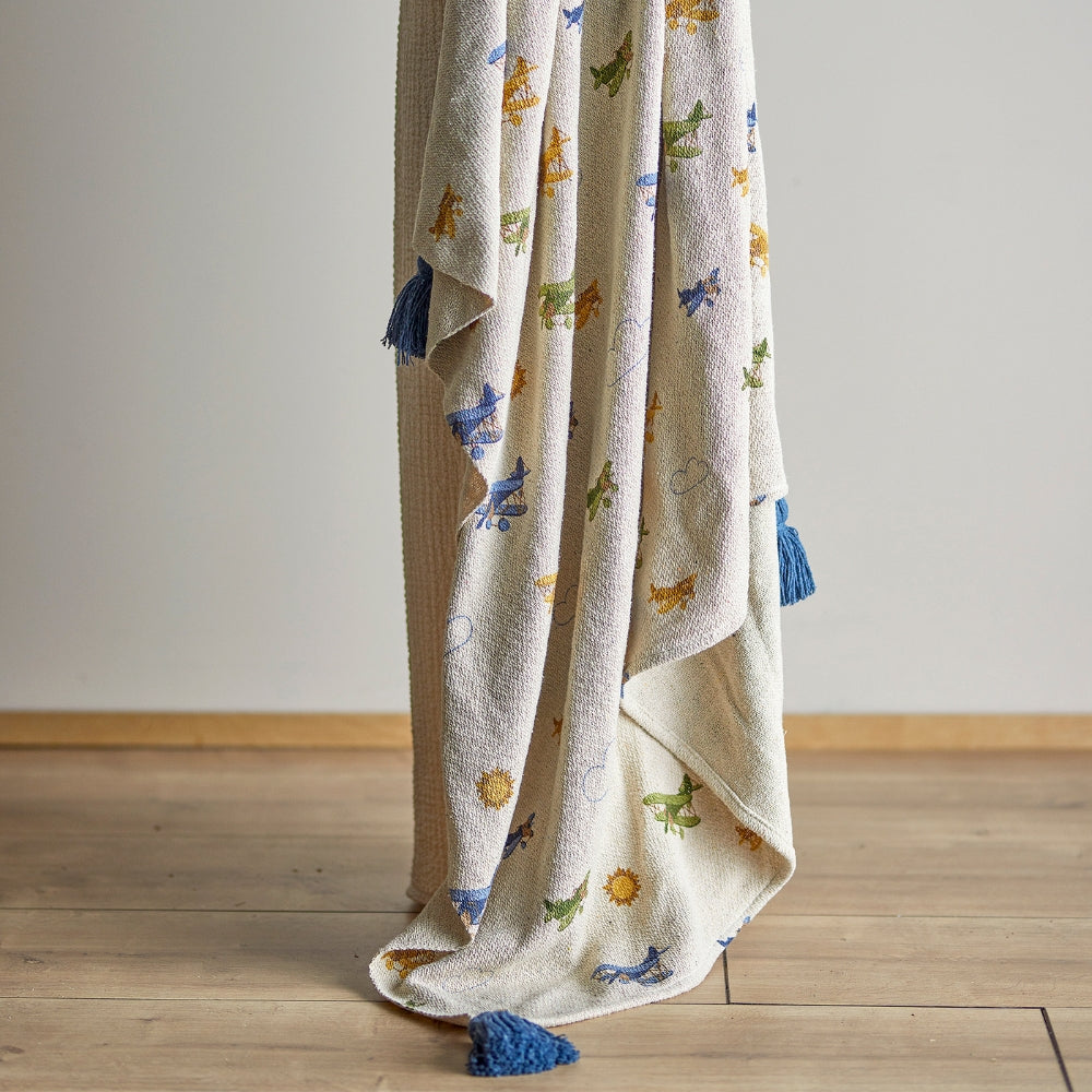 Ten Koc dekoracyjny z kolekcji Plane pięknie dopełni pokój dziecka, ale równie dobrze sprawdzi się w salonie jako miękka narzuta.