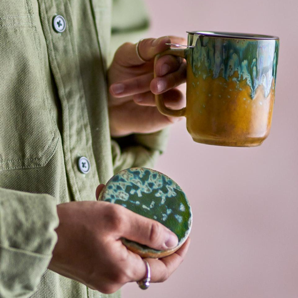 Ze względu na glazurę każdy kubek do herbaty będzie się różnić odcieniami ciepłych tonów ziemi i jasnych perłowych odcieni.