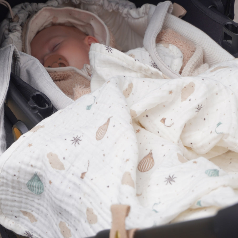Miękki muślinowy kocyk dla niemowląt GOTS Dreamland od Cam Cam Copenhagen to idealne połączenie funkcjonalności, komfortu i stylowego designu.