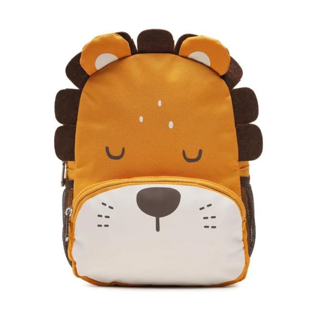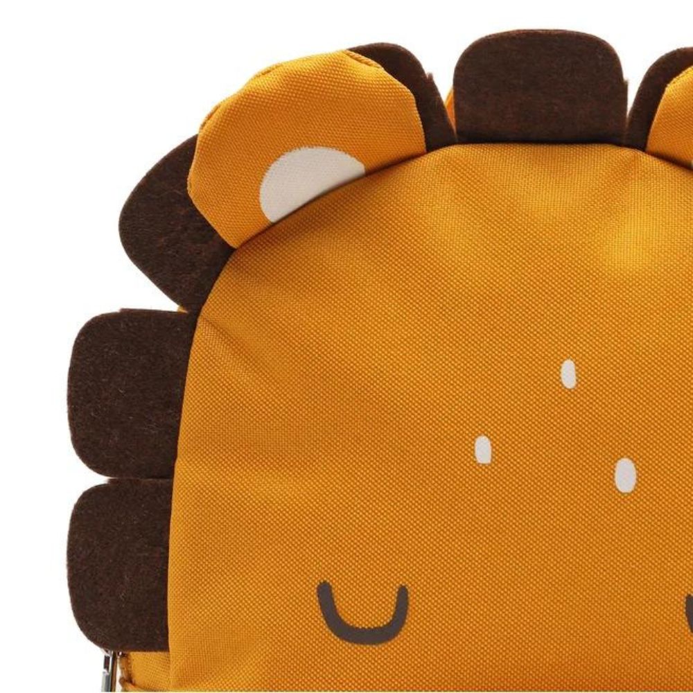 Całość ozdobiona jest postacią lwa, a plecak wyposażony jest w niewielką rączkę do łatwego przenoszenia.