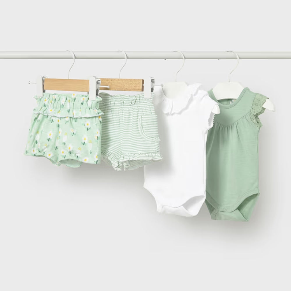 Mayoral Zestaw niemowlęcy dla dziewczynki 2-pak body i 2-pak szorty Alga
