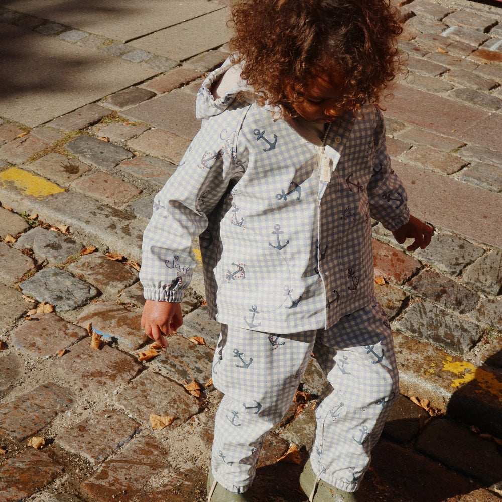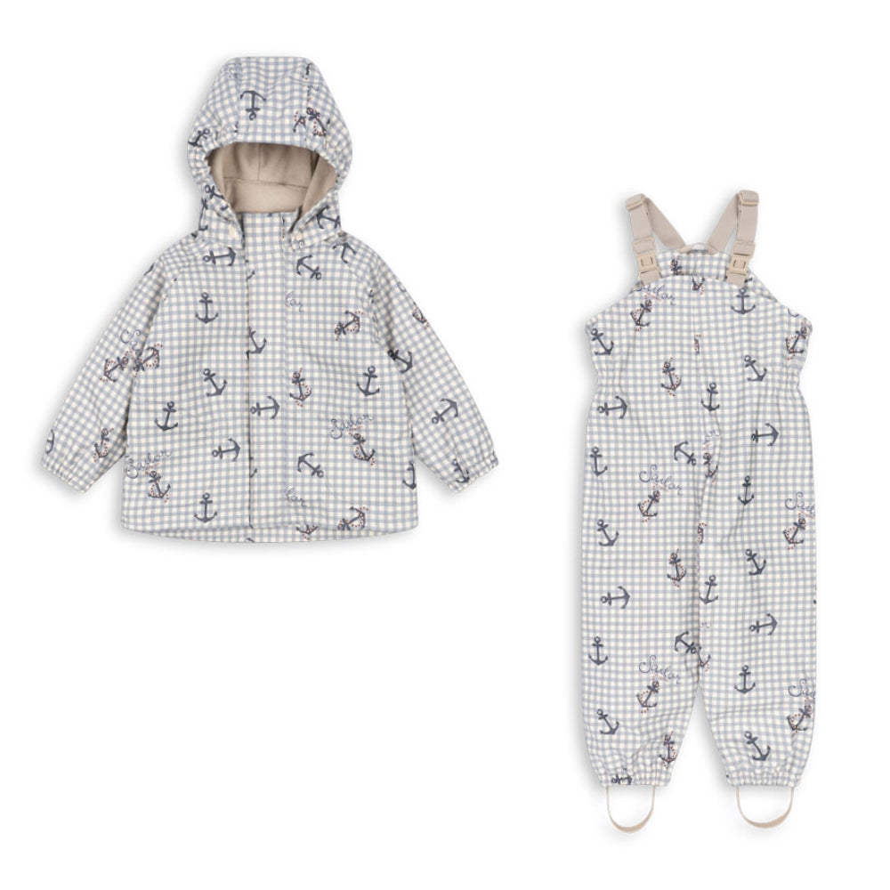 Konges Slojd Kurtka i spodnie przeciwdeszczowe dla dzieci Rainy Palme Set Sailor Check