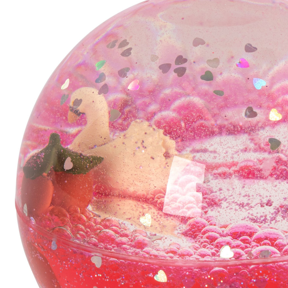 - Materiał: zewnętrzna powłoka TPU, wnętrze wypełnione wodą, olejem palmowym, brokatem PET i figurką z żywicy polimerowej