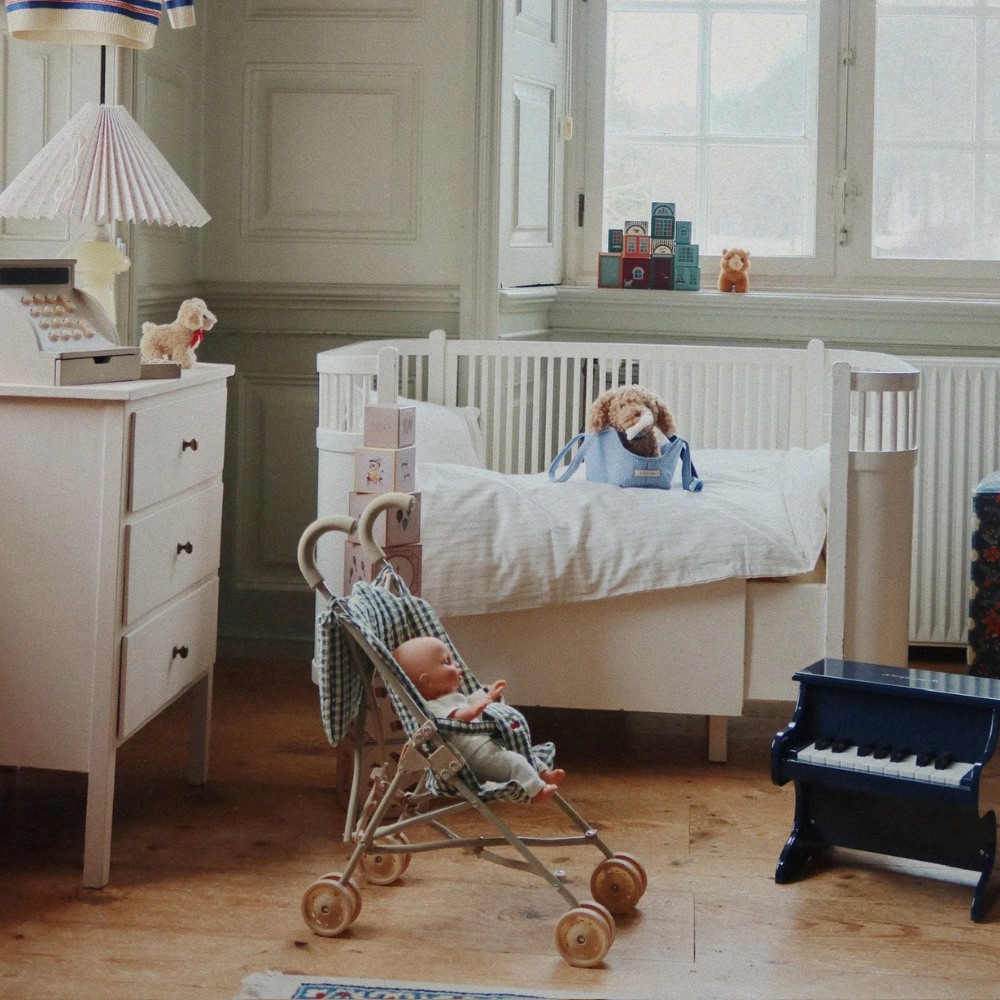 Wózek dla lalek Konges Slojd to piękny i stabilny towarzysz codziennych zabaw – gotowy do użytku od razu po wyjęciu z pudełka.