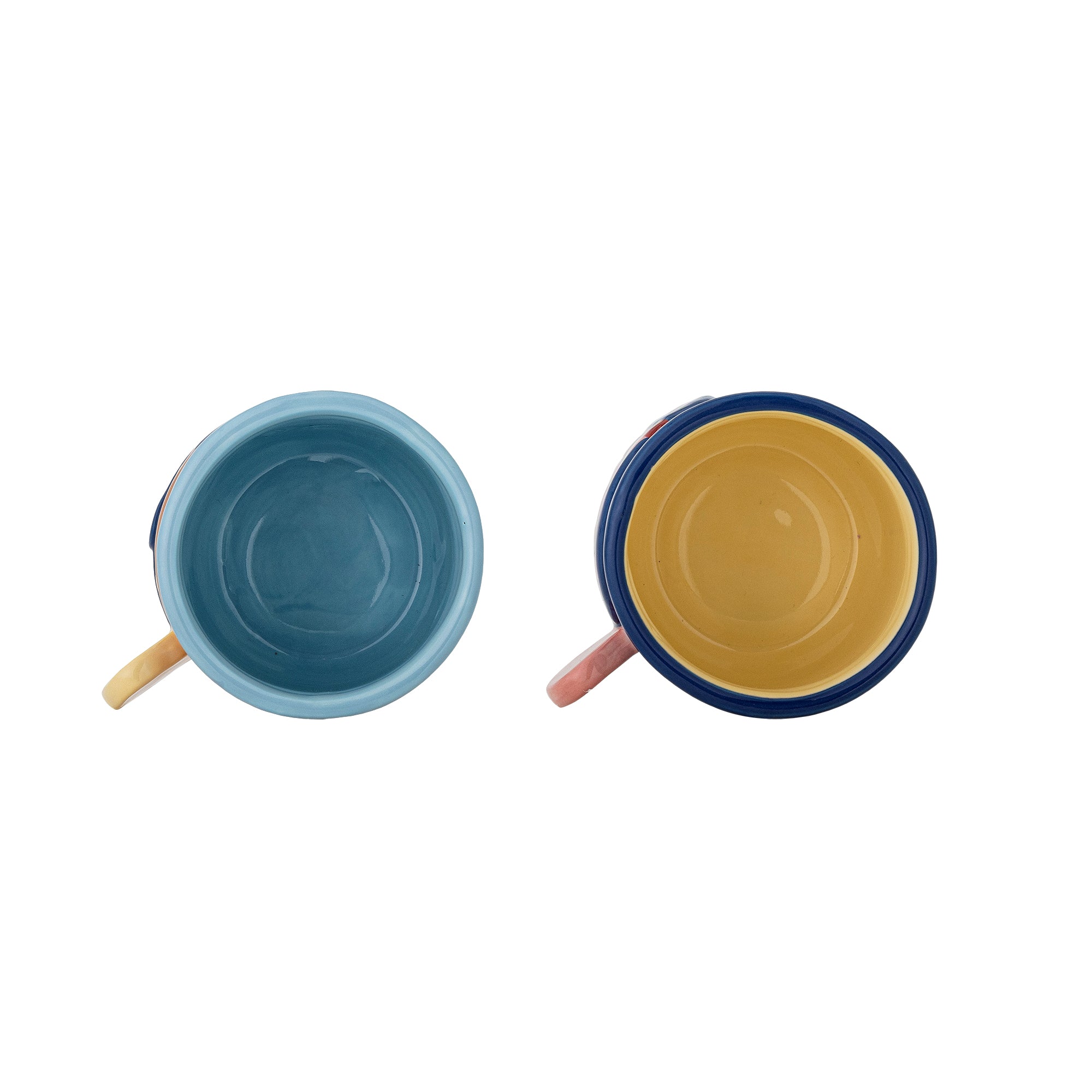 Zestaw dwóch kubków został wykonany w całości z kamionki i jest w pełni bezpieczny do kontaktu z żywnością.