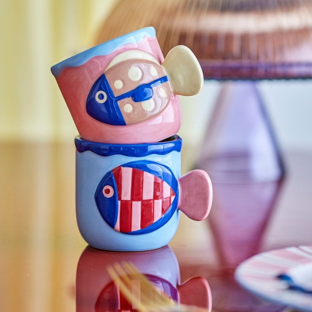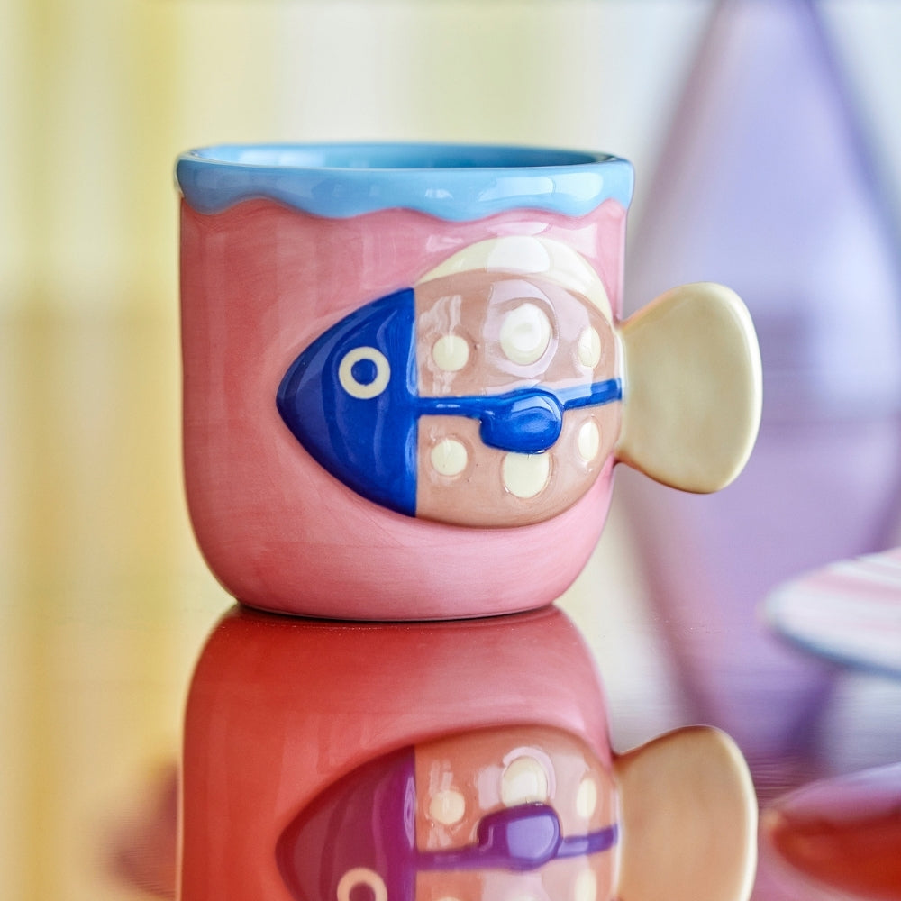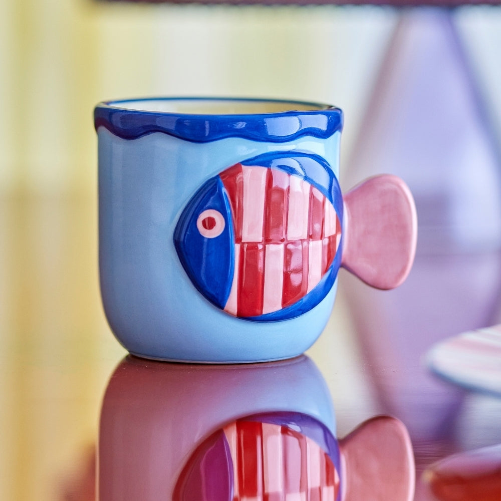 Delikatny, tłoczony motyw ryby oraz ręcznie malowane wykończenie w miękkich, wielokolorowych tonach sprawiają, że każdy kubek prezentuje się wyjątkowo i przyciąga wzrok. To idealny wybór do porannej kawy, herbaty lub kakao.