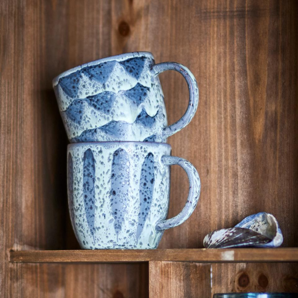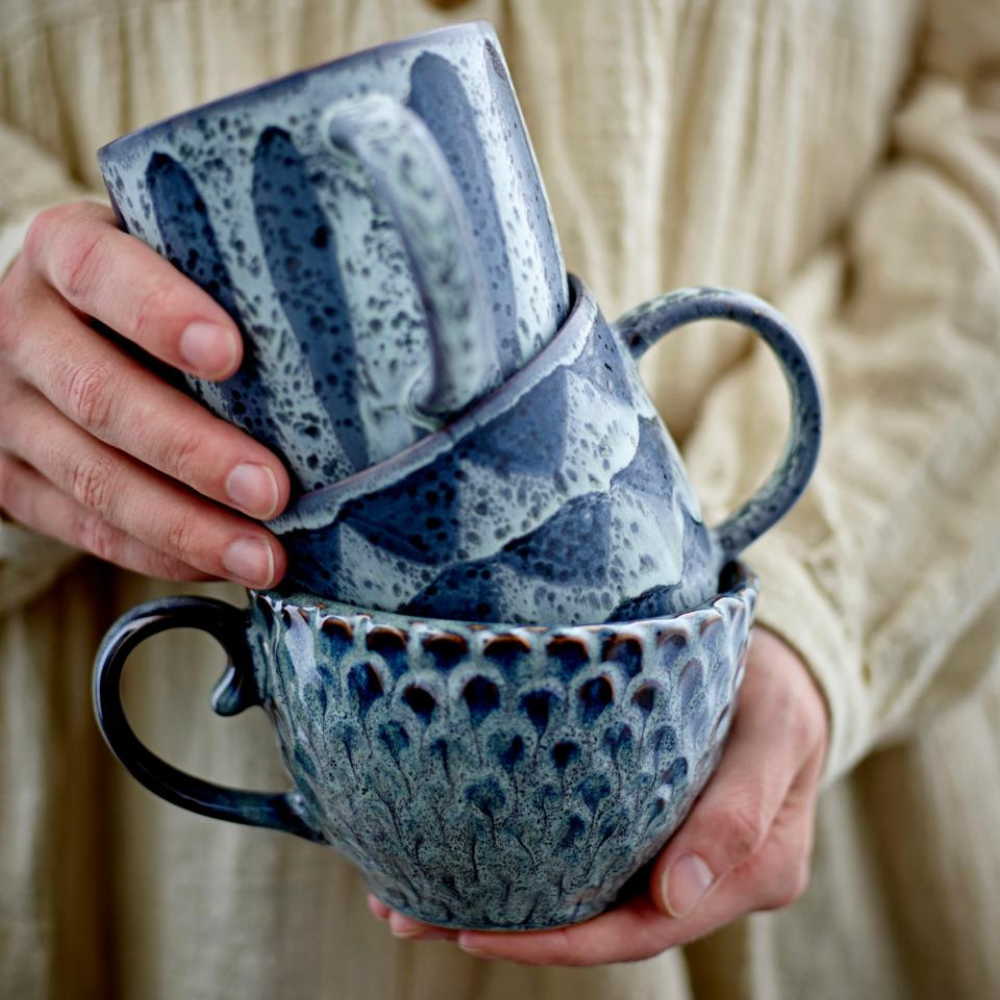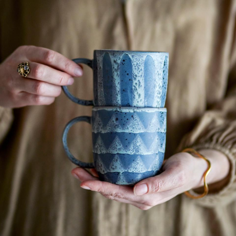 Każdy kubek wykończono reaktywną glazurą i ręcznie malowanymi detalami, dlatego naturalne różnice w wzorze i intensywności koloru sprawiają, że każdy egzemplarz jest jedyny w swoim rodzaju.