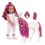 Śliczna lalka dla dzieci Estra ze źrebakiem i ozdobami do włosów marki Our Generation.