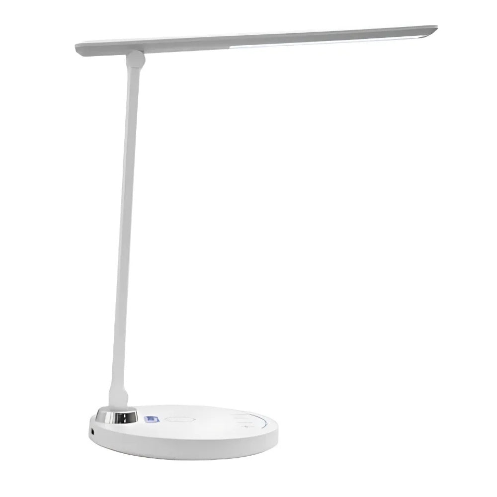 Multifunkcyjna lampka na biurko ma moc 10 W, jasność regulowana dotykowym suwakiem w siedmiu intensywnościach.