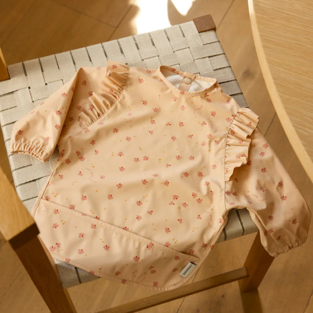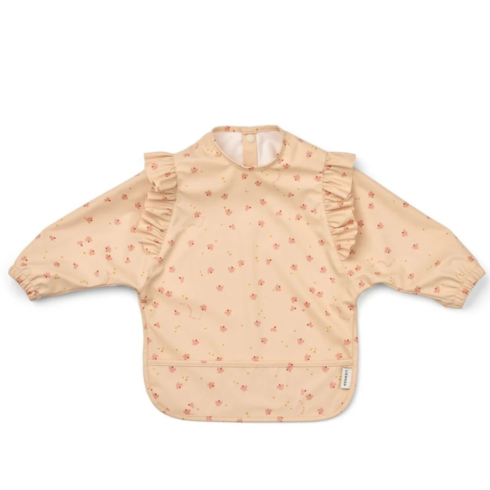 Liewood Śliniak niemowlęcy z falbanką i rękawkami Merle Mini Butterfly / Apple blossom