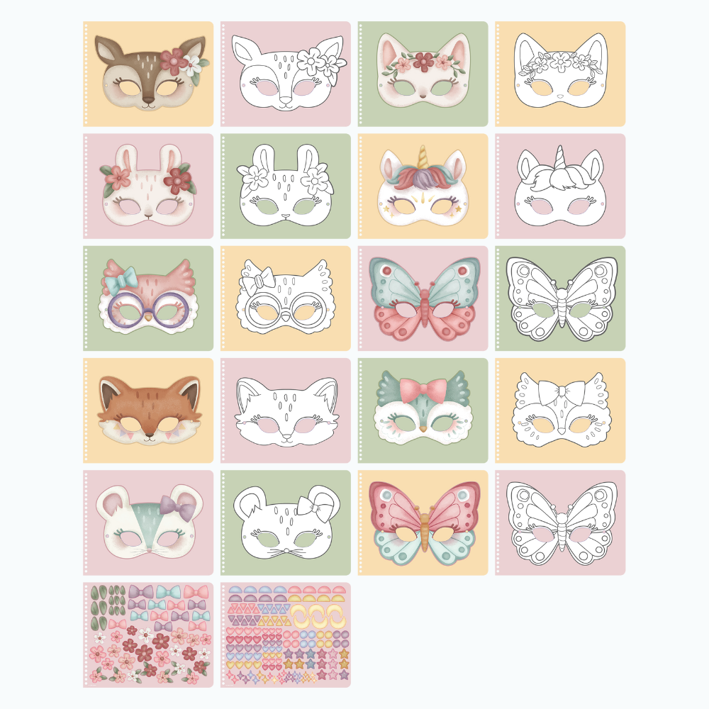 W środku czeka 20 kolorowych masek do wycinania oraz bezpieczne nożyczki dostosowane do małych rączek, dzięki czemu maluch może samodzielnie tworzyć i odgrywać scenki z bohaterami Little Dutch.
