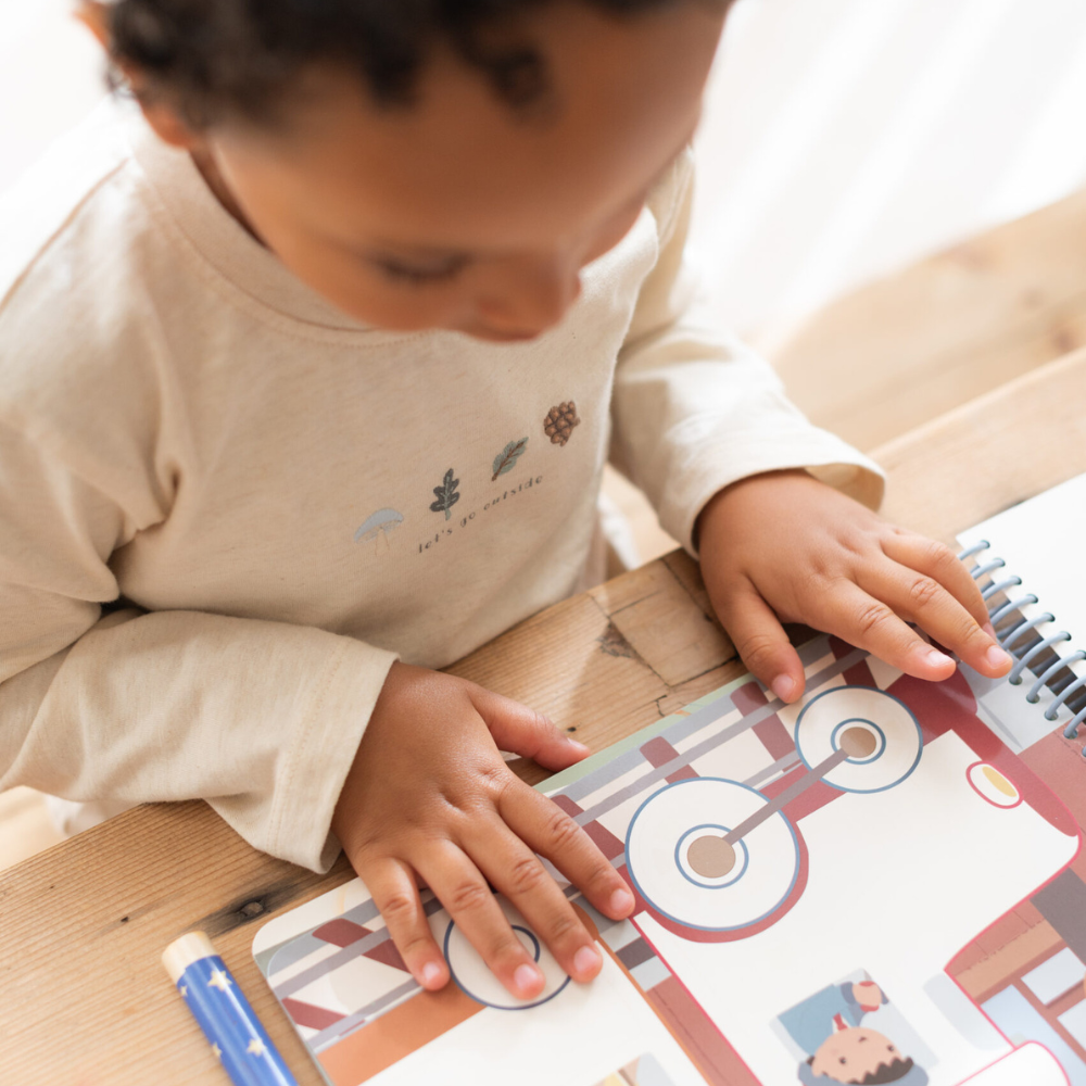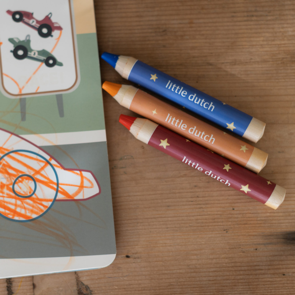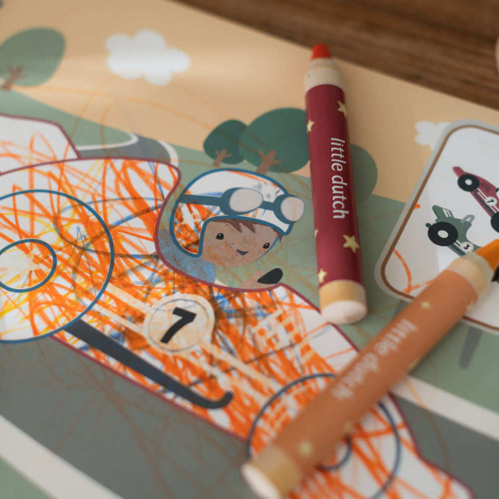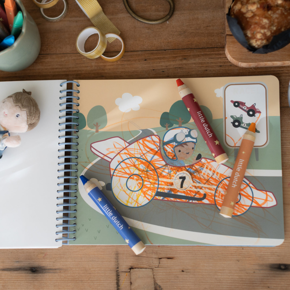 Kreatywny zeszyt z kredkami Magiczna Jim marki Little Dutch.