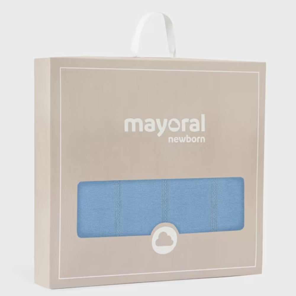 Kocyk bawełniany Mayoral to delikatny i praktyczny dodatek do codziennej opieki nad niemowlęciem.