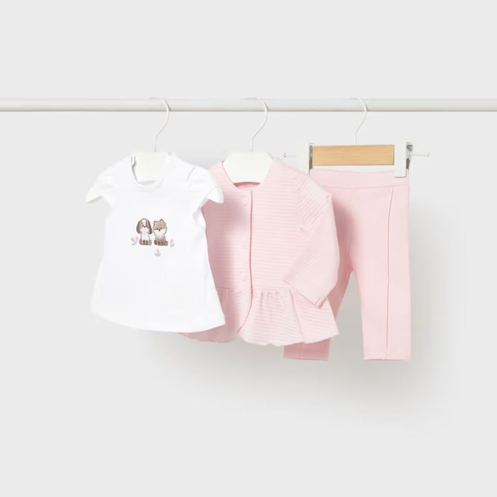 Mayoral Komplet dla dziewczynki 3-częściowy z marynarką, legginsami i koszulką Róż baby