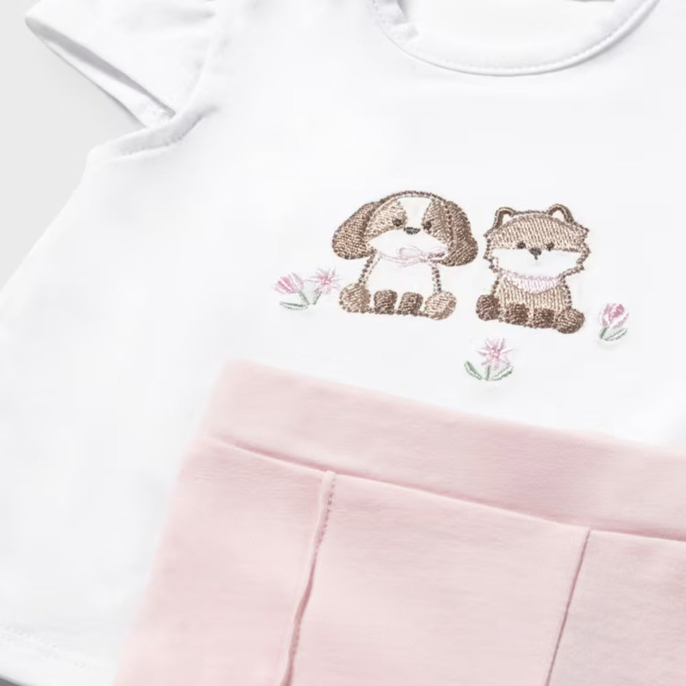 Komplet dla dziewczynki Mayoral to elegancka i jednocześnie wygodna propozycja dla noworodka, idealna na co dzień i na wyjątkowe okazje.