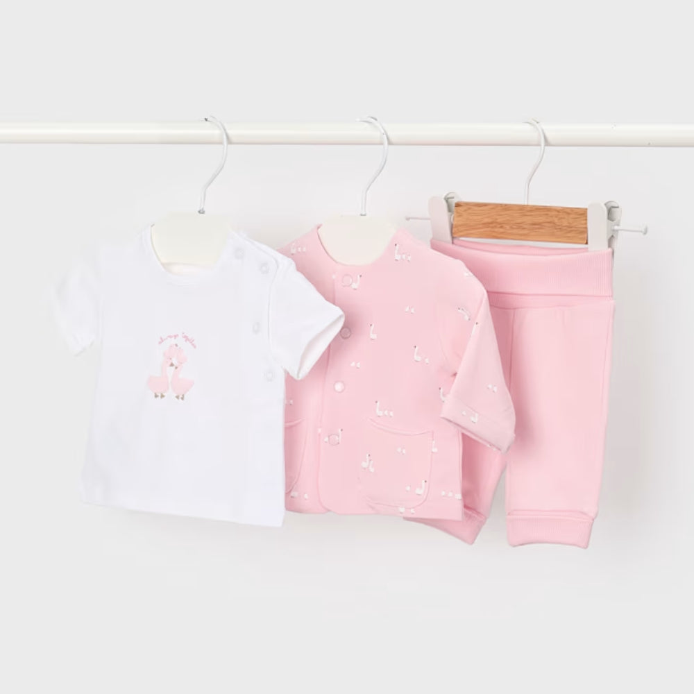 Mayoral Komplet dla niemowlaka 3-częściowy dresowy z bluzą, spodniami i koszulką Baby Pink