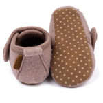 Miękka podeszwa z imitacji zamszu jest delikatna dla podłóg i komfortowa dla malucha.