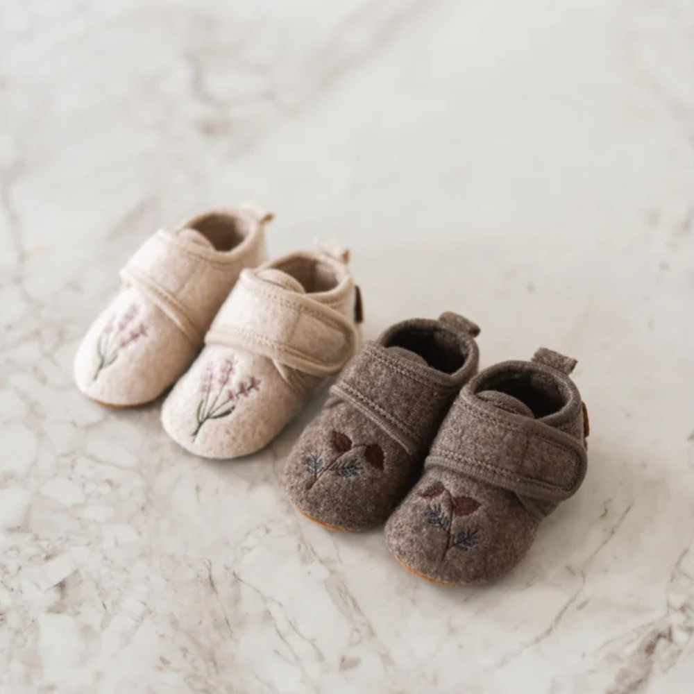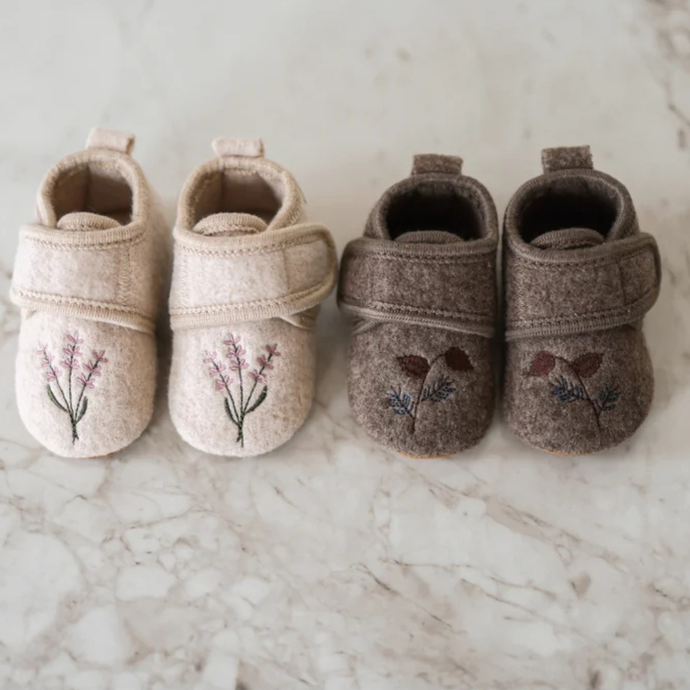 Mikk Line Wełniane buciki dziecięce z haftem typu prewalker Melange Denver