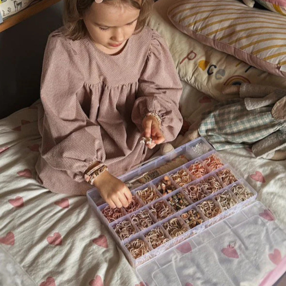Zestaw do robienia bransoletek Mrs Ertha wpisuje się także w filozofię Montessori – wspiera rozwój dziecka poprzez aktywność, eksperymentowanie i samodzielne tworzenie.