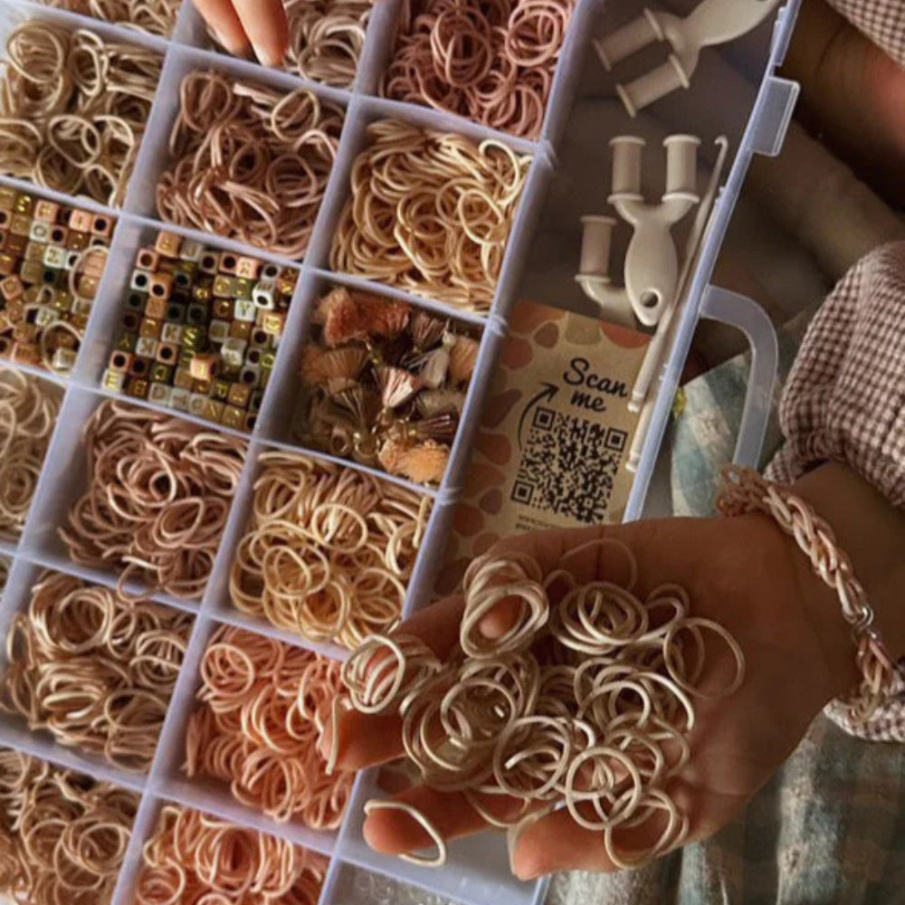 Mrs Ertha stawia na kreatywność i jakość – w zestawie znajduje się aż 2700 gumek, 250 koralików z literkami, 40 małych kuleczek oraz wszystkie niezbędne akcesoria do łączenia i zapinania bransoletek.