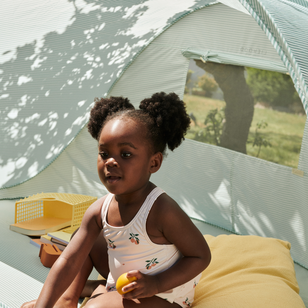 Lekki i praktyczny namiot rozkładany Liewood to szybki sposób na stworzenie cienia i bezpiecznej przestrzeni do zabawy na świeżym powietrzu.