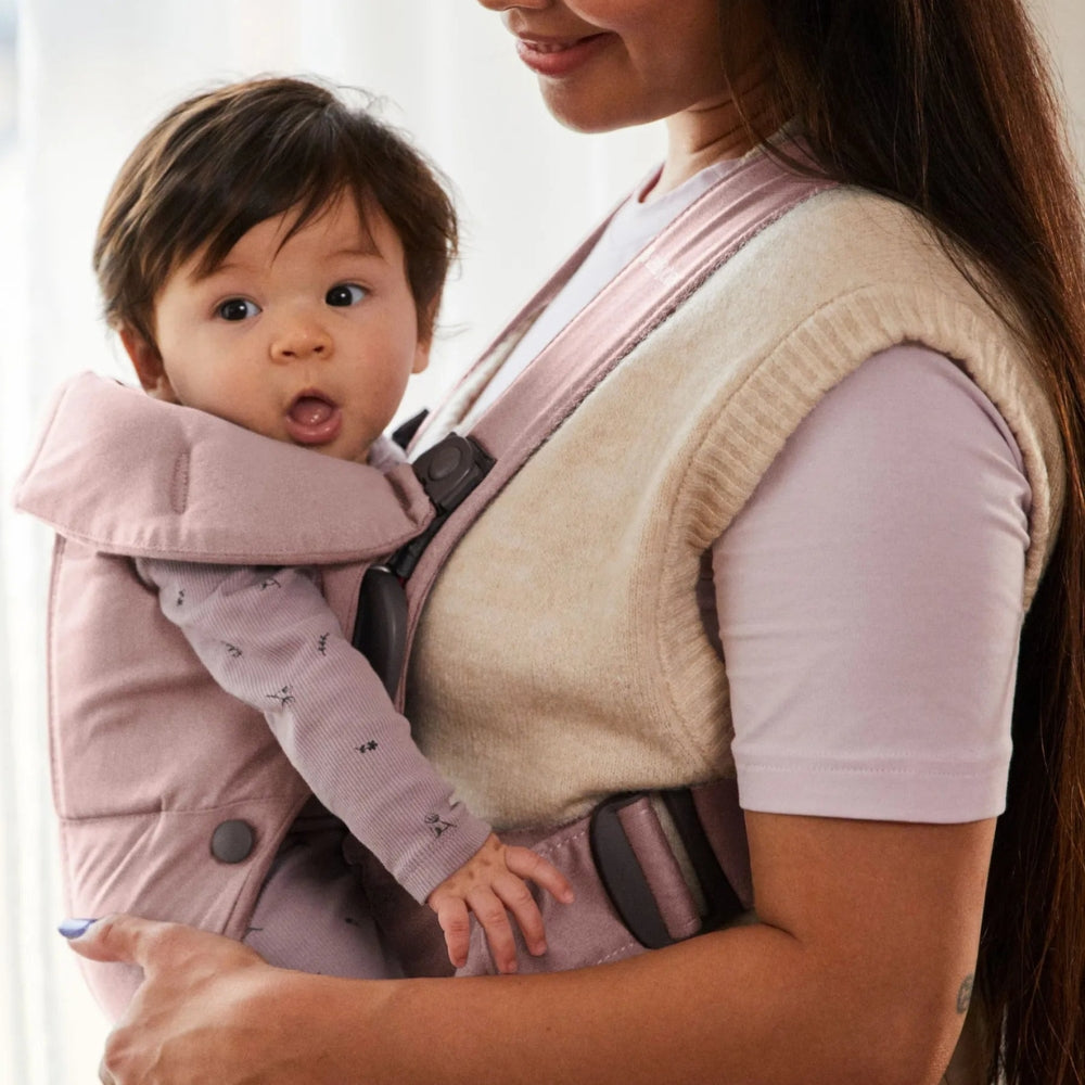 Nosidełko dla niemowlaka MINI Woven w kolorze Dusty pink marki BABYBJORN.
