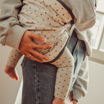Nosidełko świetnie sprawdza się zarówno w domu, jak i na spacerze, a jego subtelny wygląd pasuje do każdej stylizacji.