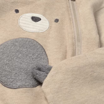 Delikatne śpioszki z okrągłym dekoltem i wygodnym zamkiem błyskawicznym ułatwiają ubieranie bez stresu, a subtelny haft dodaje uroku.