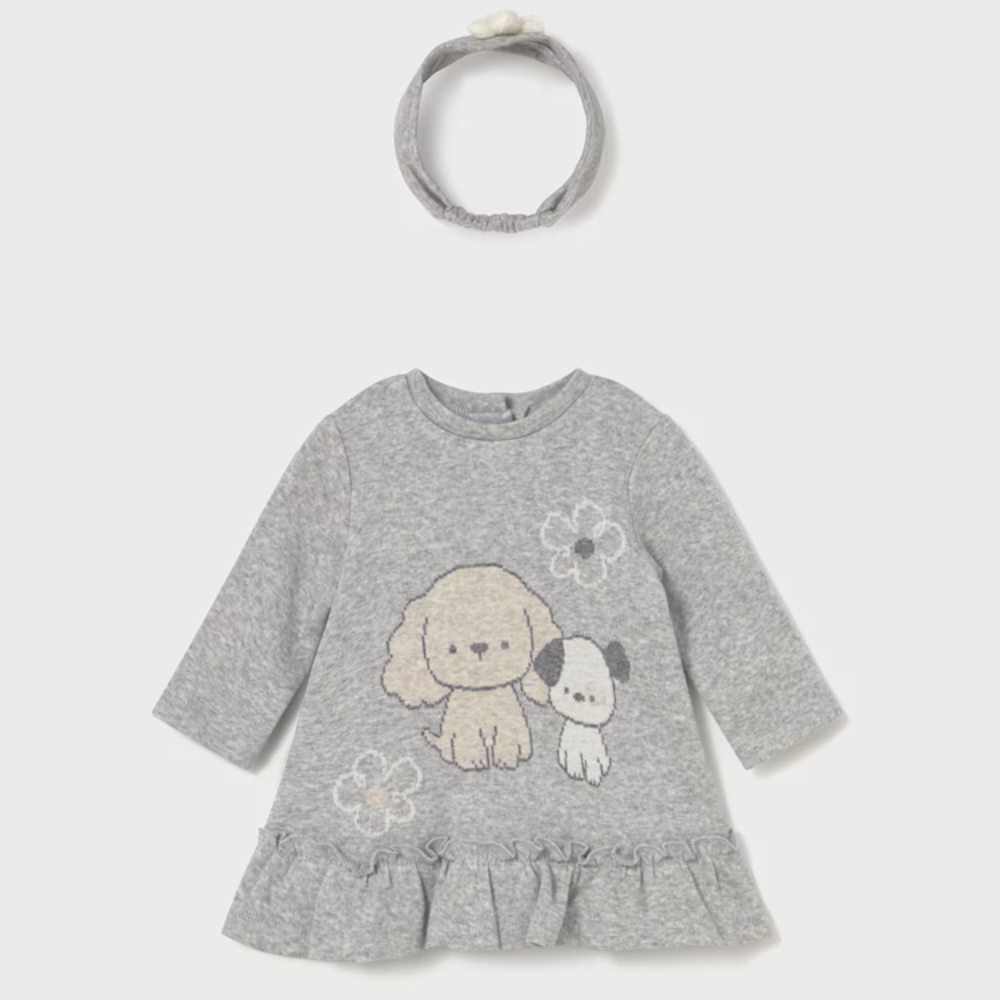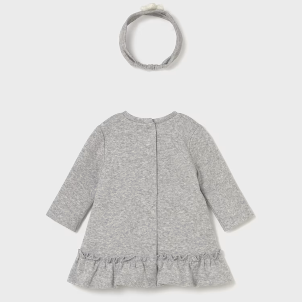 Sukienka z opaską marki Mayoral to uroczy, wygodny zestaw dla noworodka – idealny na pierwsze wyjścia, rodzinne zdjęcia i wyjątkowe okazje.