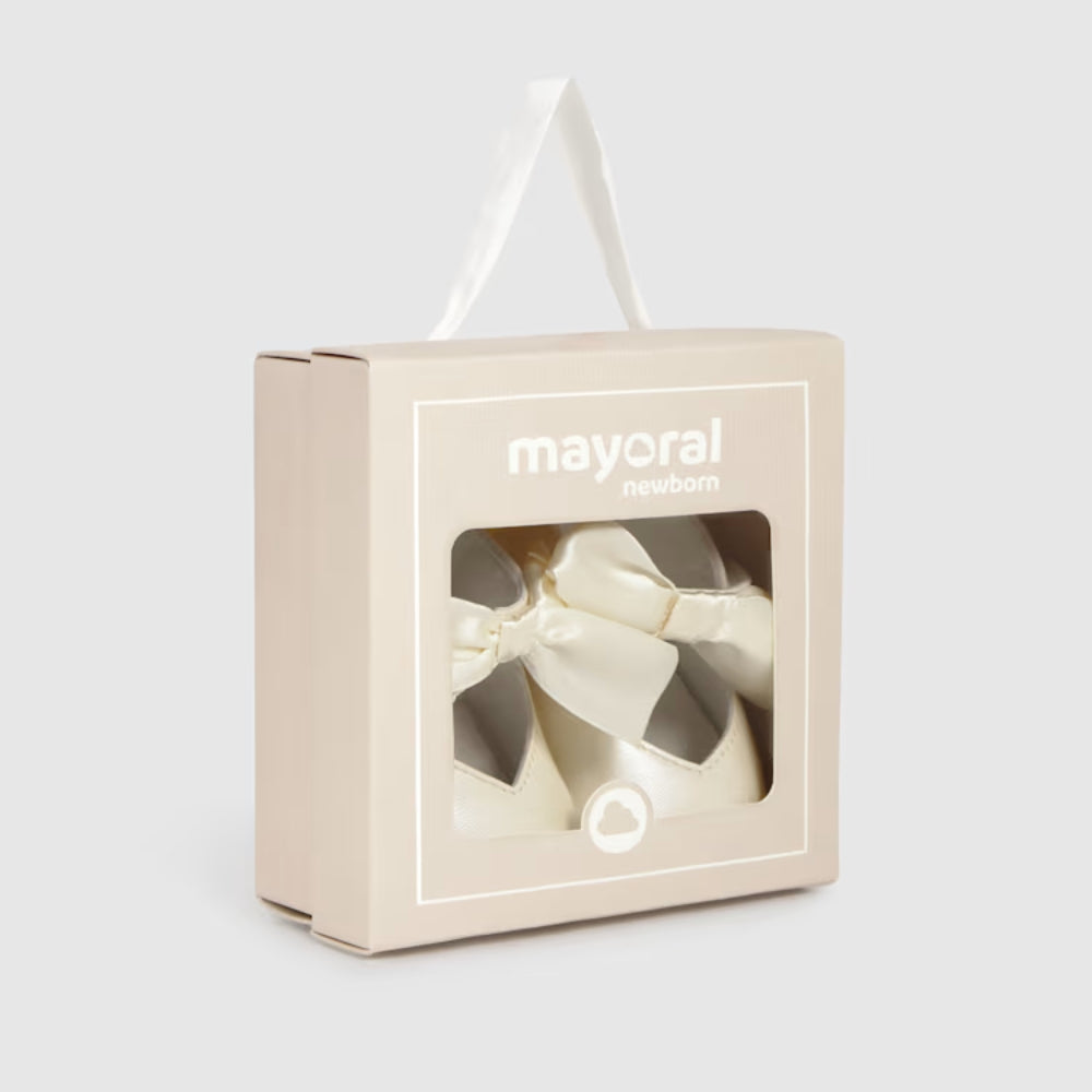 Mayoral Buty niechodki dla dziewczynki balerinki wizytowe z kokardką Ecru
