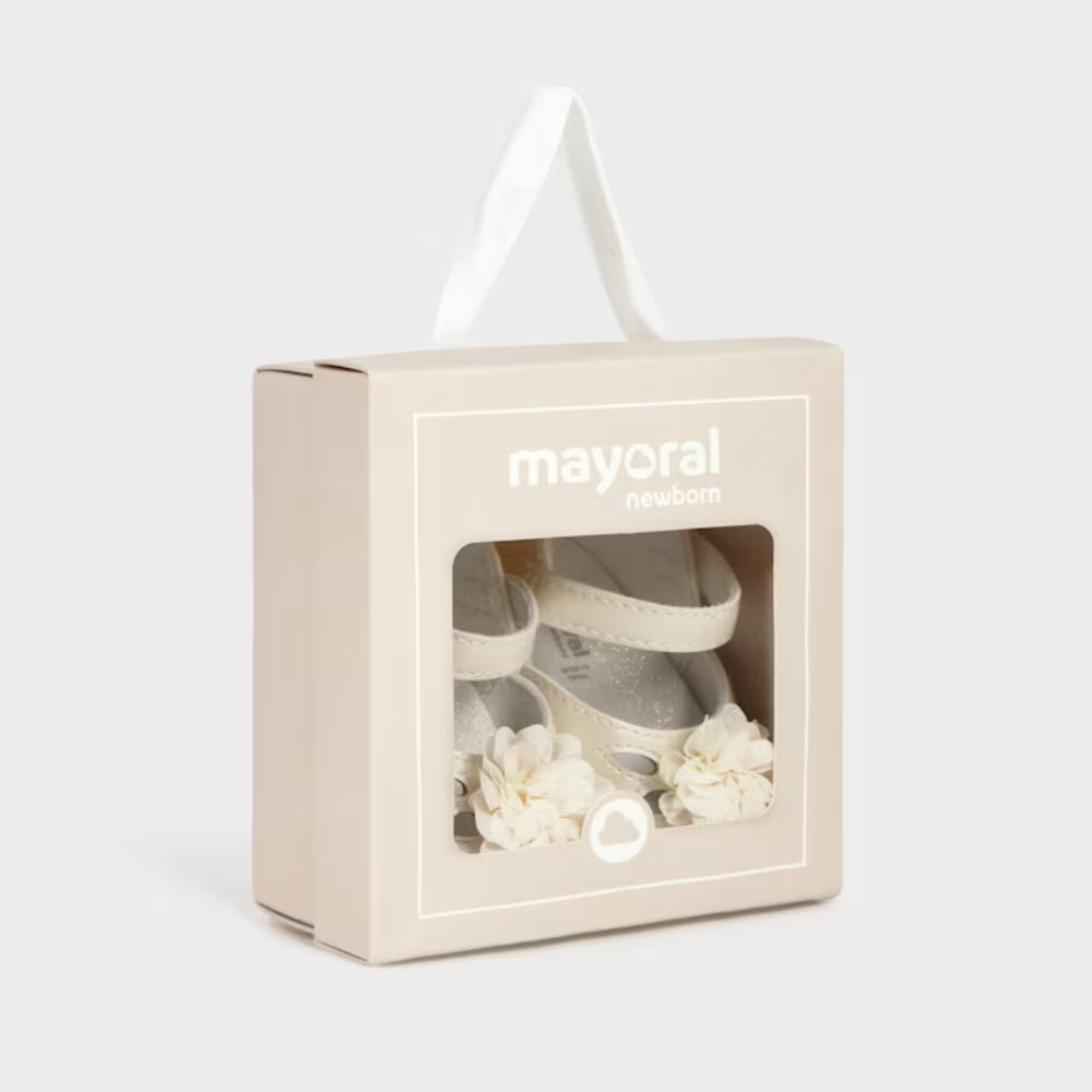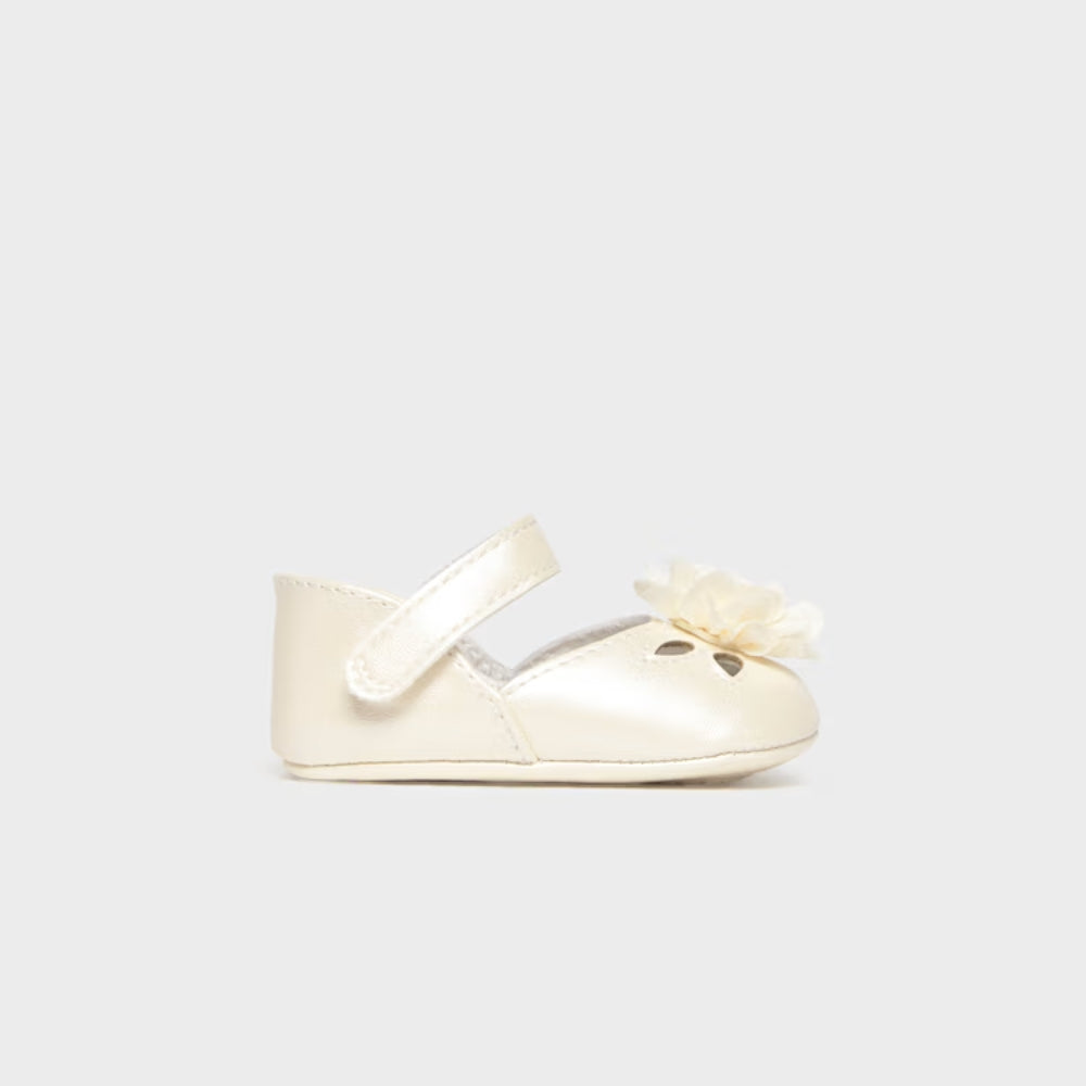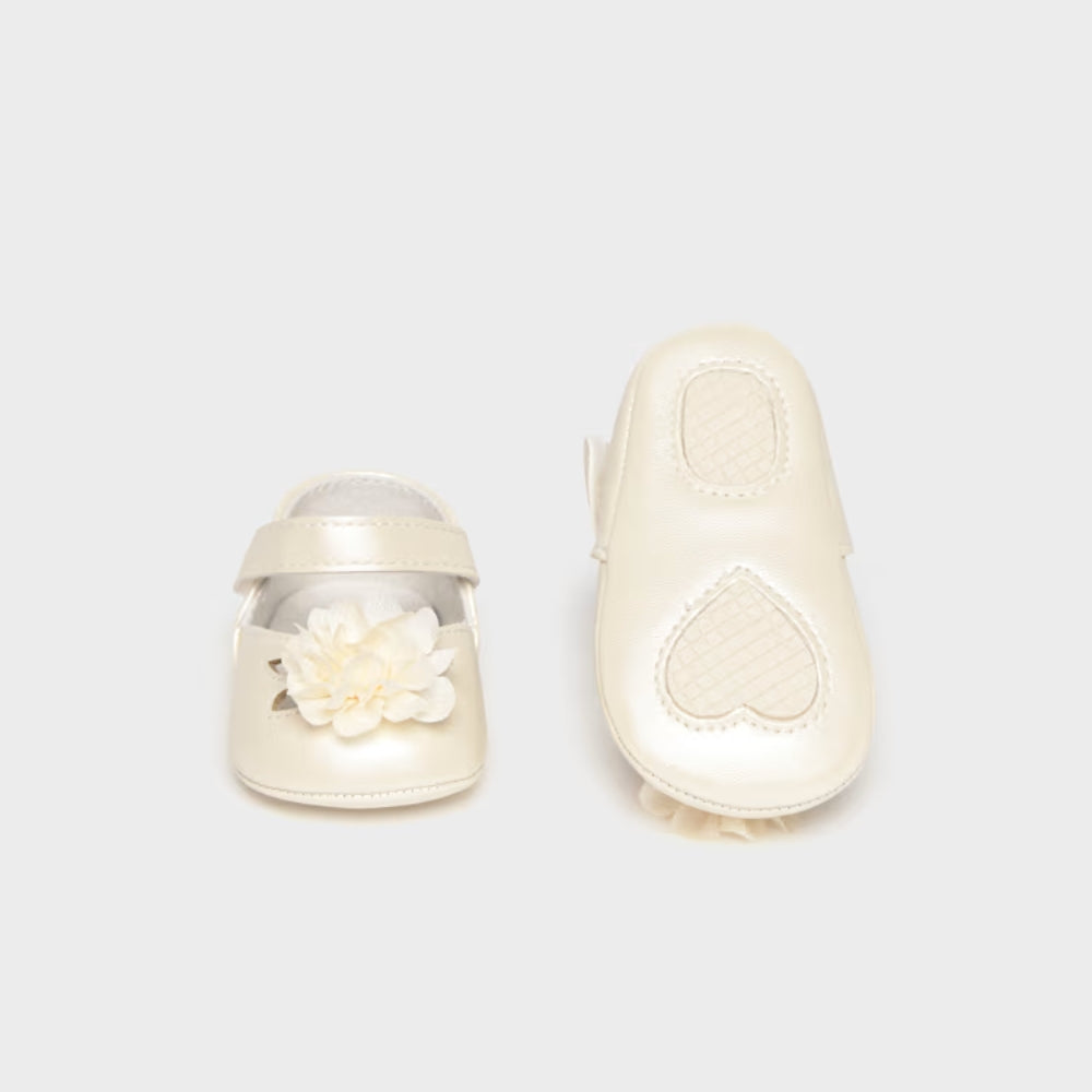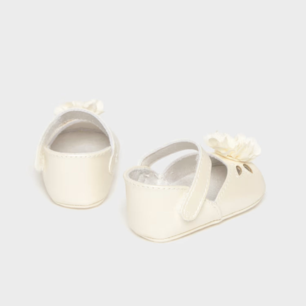 Mayoral Buty niechodki dla dziewczynki balerinki wizytowe z kwiatuszkiem Ecru