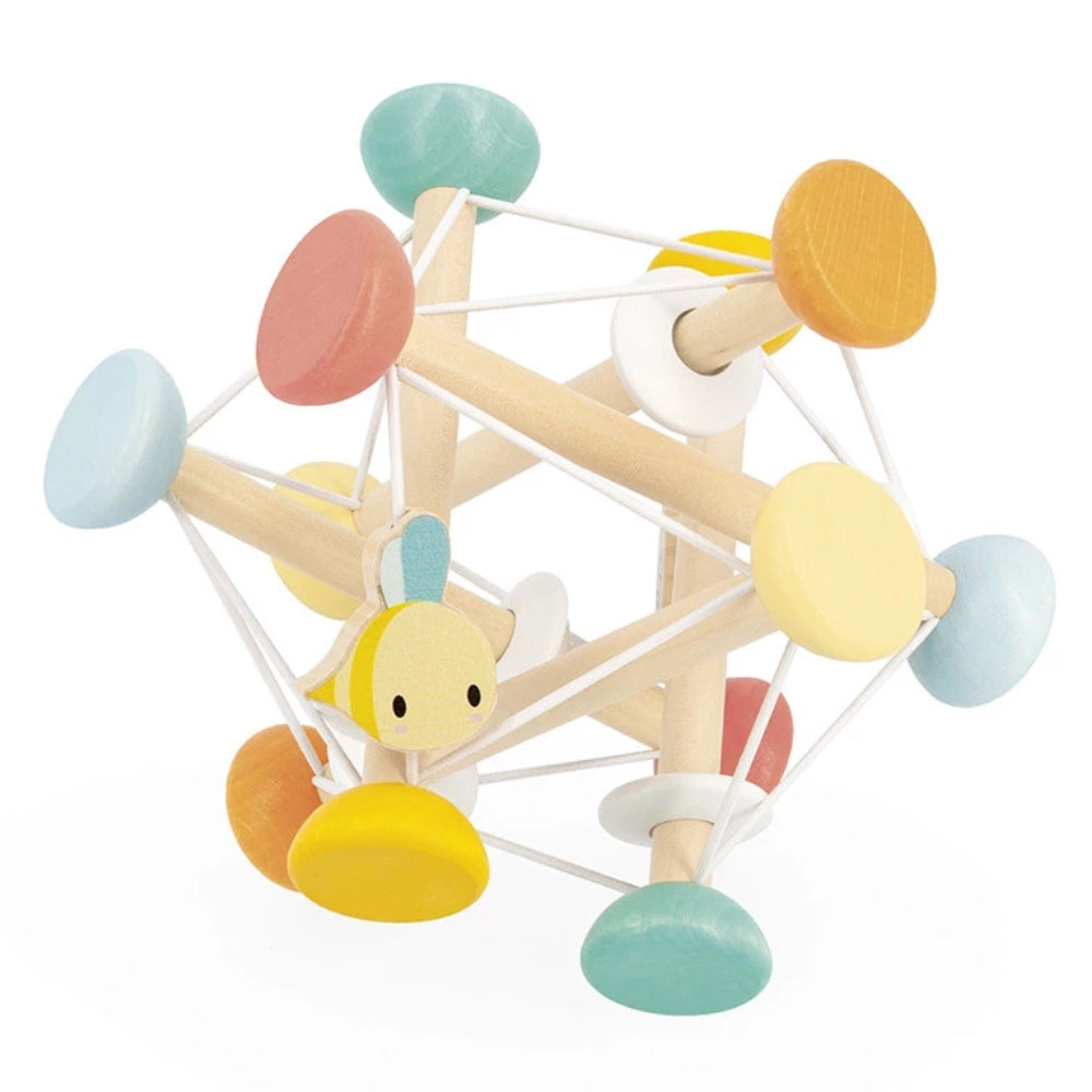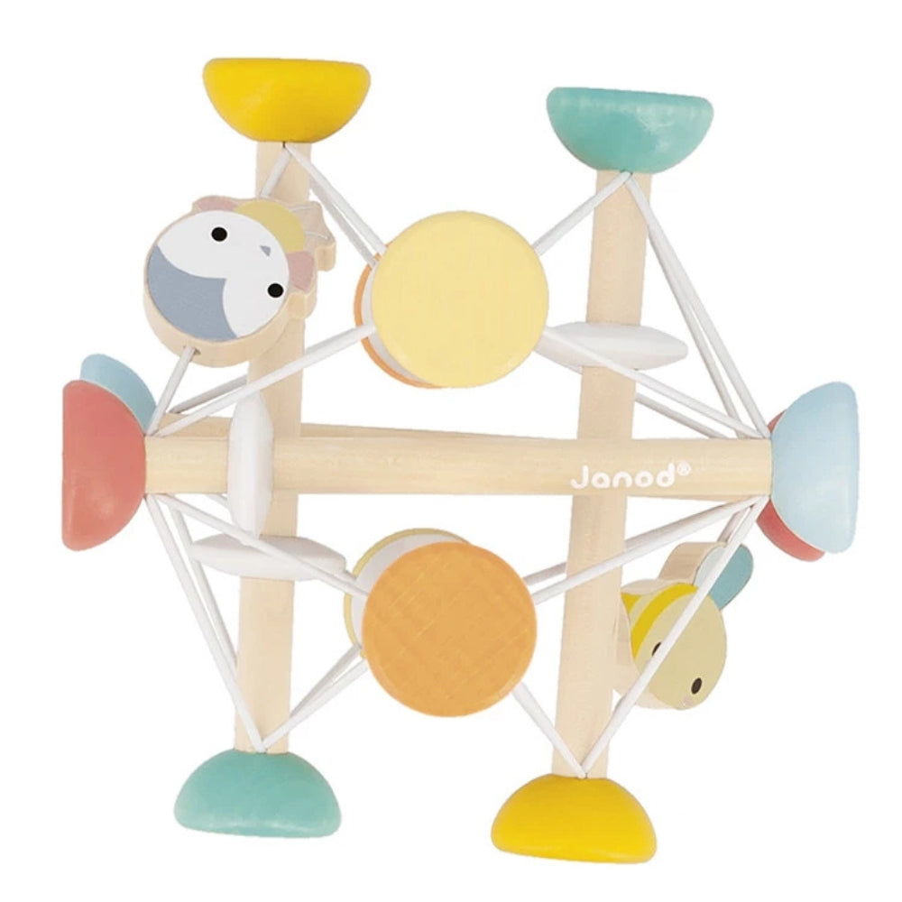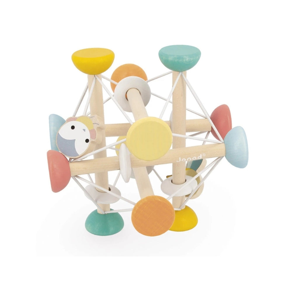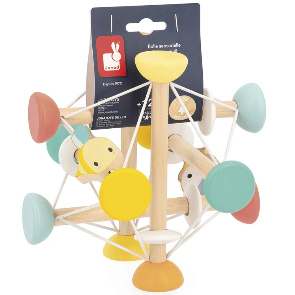 Piłka sensoryczna Janod z drewna to urocza zabawka rozwojowa dla maluchów od 1. roku życia.